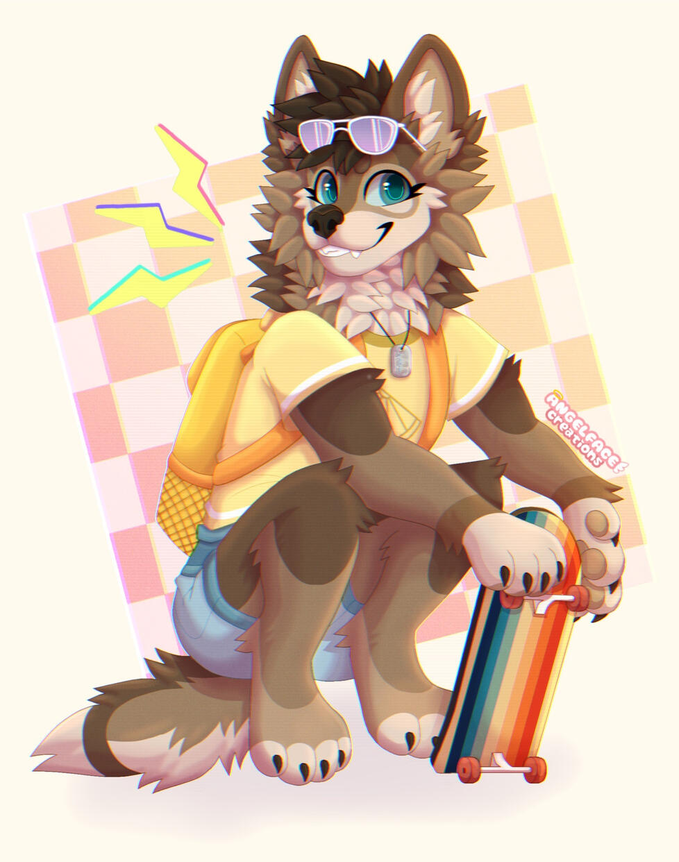 Extra Props: Please have her in her summer outfit w/ backpack and glasses with her skateboard by her side.